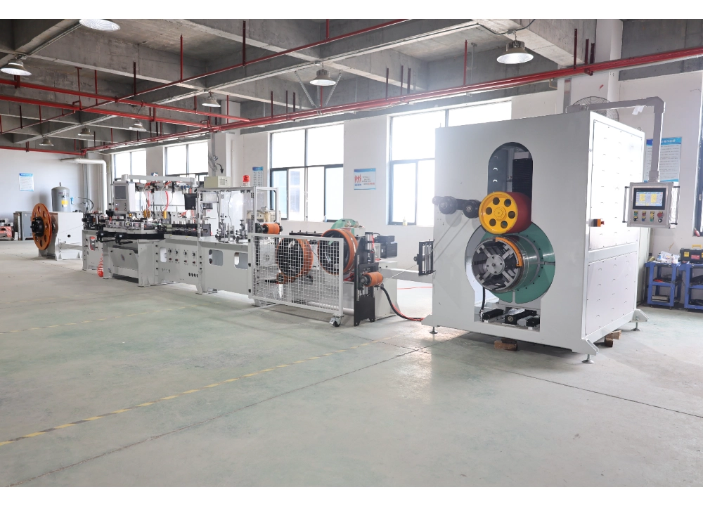 Wire passing wheel at the feeding end. The strips feeding guide wheel part is installed on the sliding table lifting as a whole, so that the strips feeding fixed wheel is as close to the strips reel as possible to ensure the quality of wire arrangement.