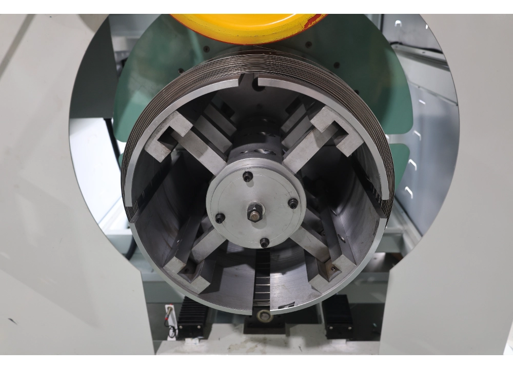 4. The traction machine line speed is 0-150m tracking and adjustable, and the stripstake-up machine automatically tracks the traction machine speed to keep the tension constant. The electric control cabinet has a reserved interface, and other processes can be configured during the rewinding process.